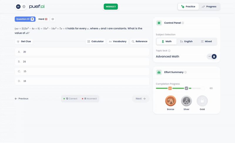 Every session is guided by real-time diagnostics and adaptive difficulty. You stay in the flow, strengthen weak spots, and retain knowledge longer. On test day, nothing feels unfamiliar. The result is less grind, more gain, and measurable confidence.